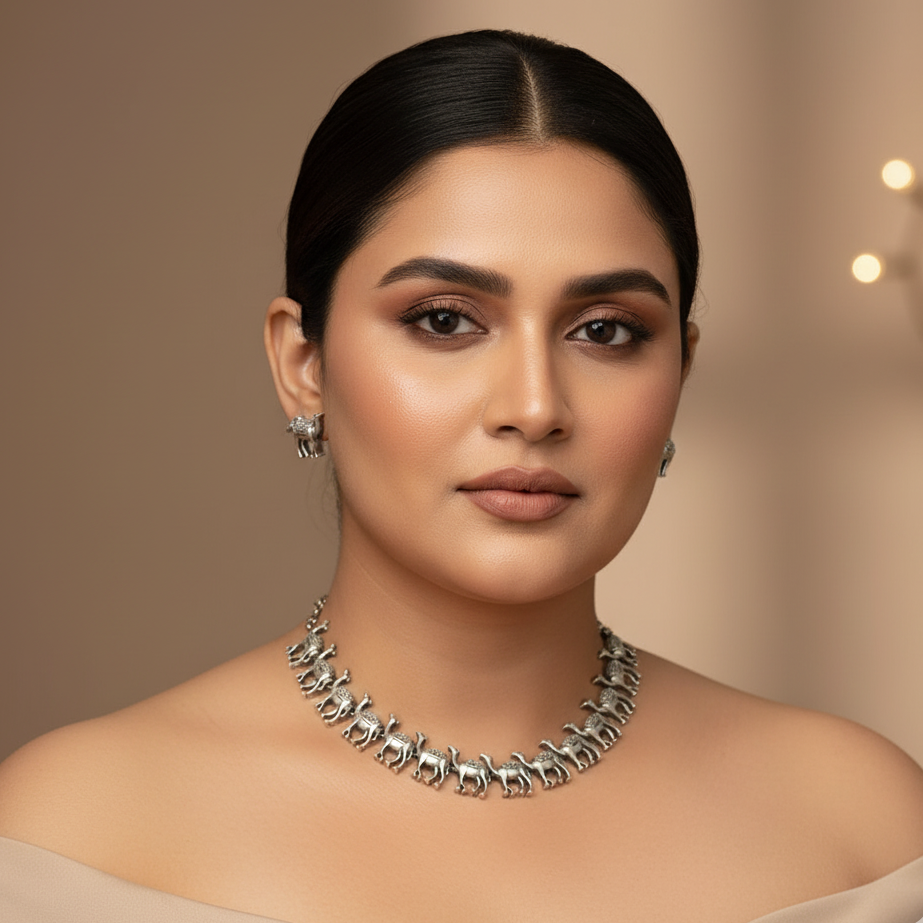 Camel Design Brass Necklace Set – A Desert-Inspired Masterpiece 🐪✨